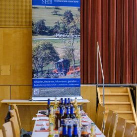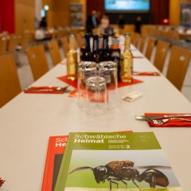 Verleihung Kulturlandschaftspreis am 13.10.2025 in Künzelsau: Info-Tisch des Schwäbischen Heimatbundes [Aufnahme: Foto Linke, Künzelsau]