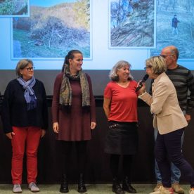 Verleihung Kulturlandschaftspreis am 13.10.2025 in Künzelsau: Preisträger Grüne Liste Hirschau mit Moderatorin Petra Klein [Aufnahme: Foto Linke, Künzelsau]