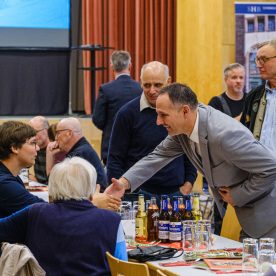 Verleihung Kulturlandschaftspreis am 13.10.2025 in Künzelsau: Dr. Bernd Langner, Geschäftsführer des Schwäbischen Heimatbundes, am Preisträger-Tisch Grüne Liste Hirschau [Aufnahme: Foto Linke, Künzelsau]