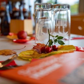 Verleihung Kulturlandschaftspreis am 13.10.2025 in Künzelsau: herbstlich dekorierte Tische [Aufnahme: Foto Linke, Künzelsau]